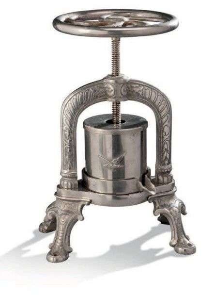 Presse à canard en métal argenté de style Régence posant sur quatre pieds.