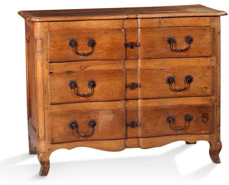 Commode en bois naturel à façade en arbalète ouvrant par trois tiroirs ter