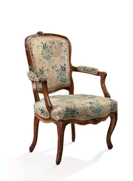 Petit fauteuil cabriolet en bois naturel garniture de tissus floral