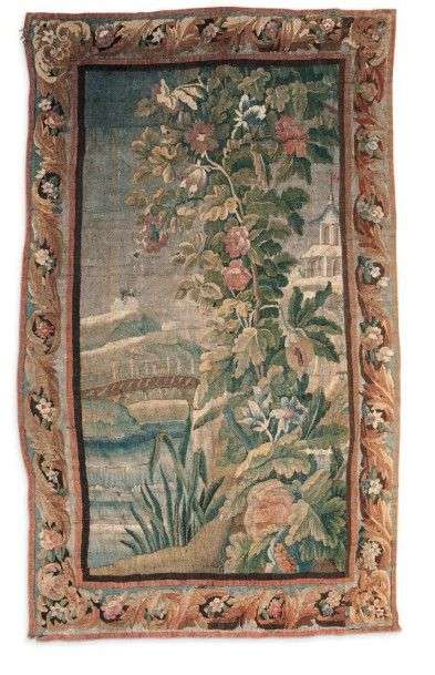 Tapisserie «Paysage fleuri au bord d'une rivière»