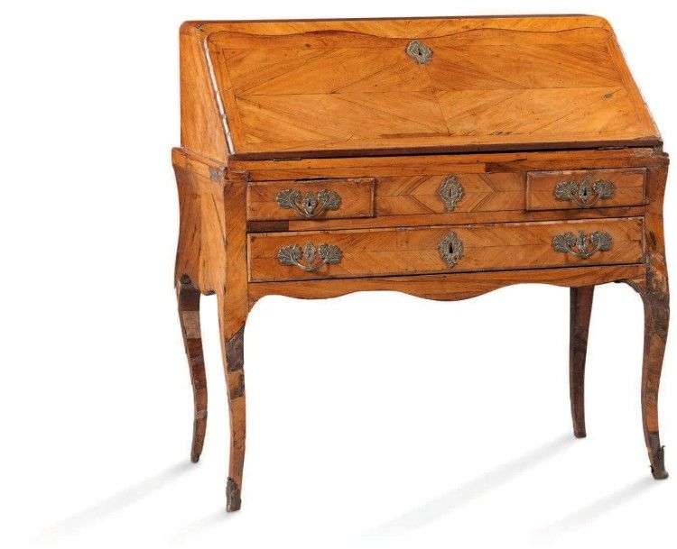 Il est orné d'entrée de serrures, de poignées de tirage et de sabots en laiton.
