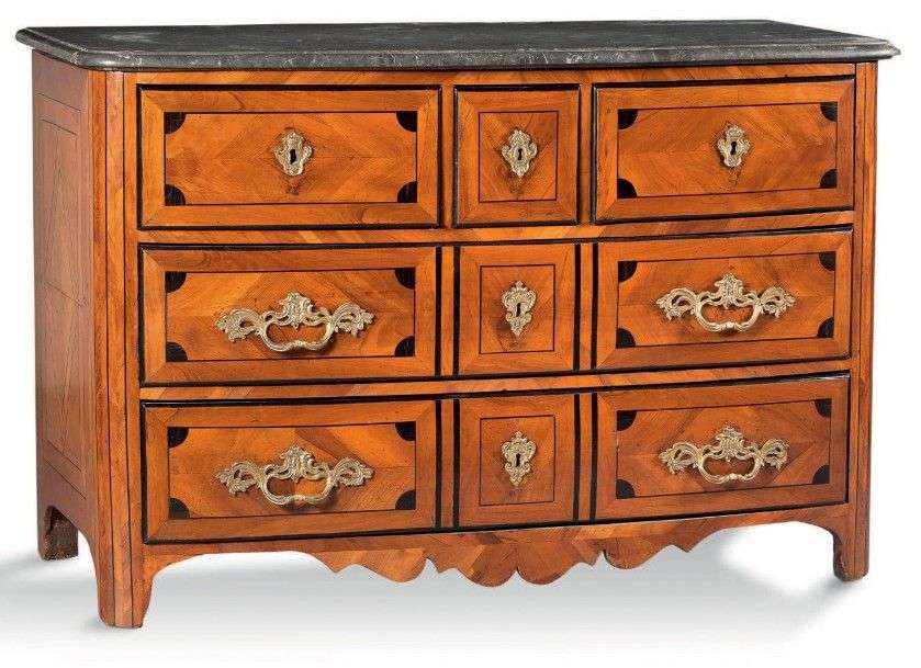 Commode de forme rectangulaire légèrement galbée en placage de noyer et fi