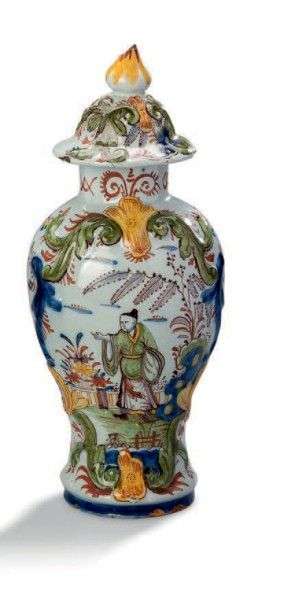 Paire de vases en faience de Delft décors aux chinois polychrome