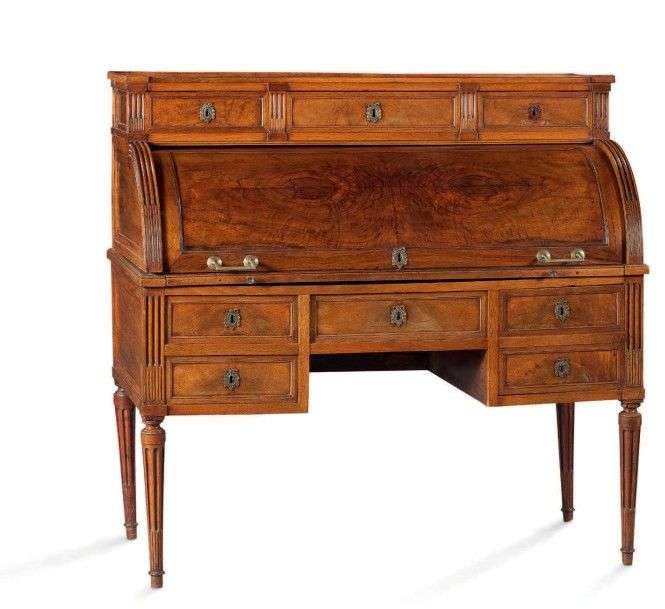 Bureau à cylindre à gradin en noyer et placage de noyer ouvrant par trois