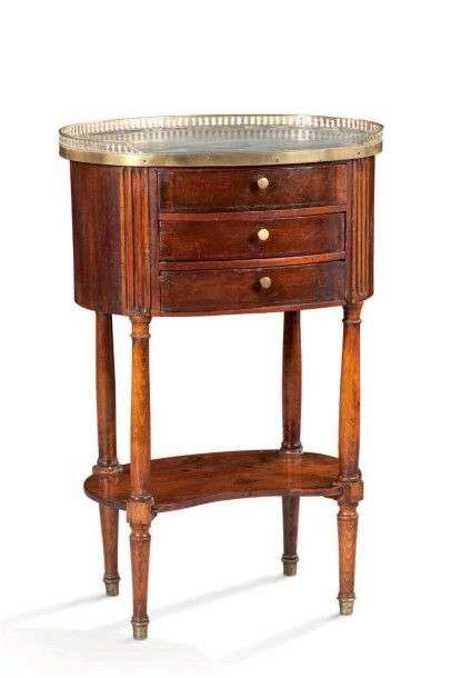 Table de salon de forme ovale en acajou et placage d'acajou.