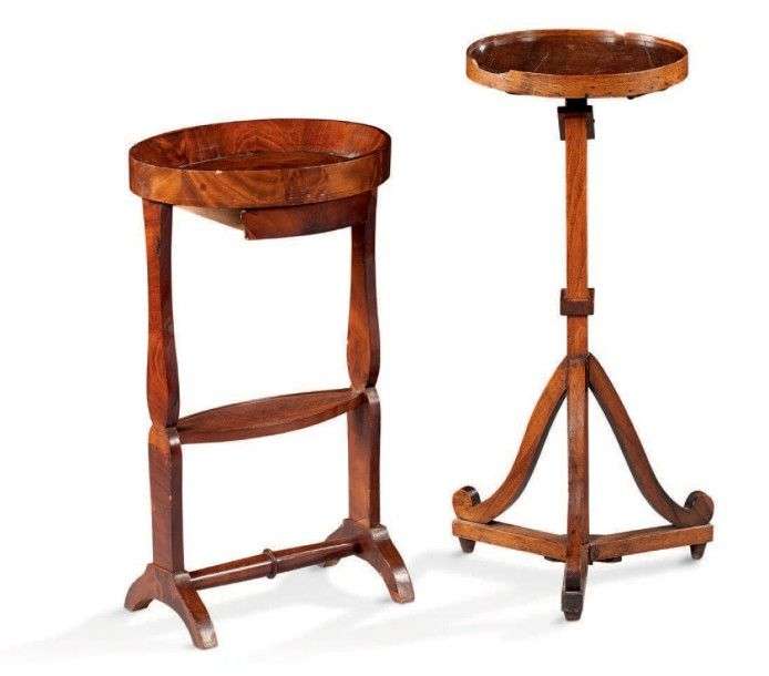 Lot comprenant un petit guéridon à crémaillère en noyer, reposant sur un piétement tripode et une petite table de salon à plateau cuvette en acajou et placage d'acajou.