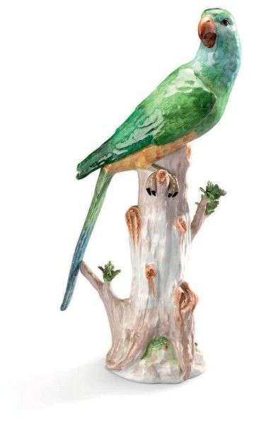 Deux sujets représentant des «Perroquets» en porcelaine polychrome.