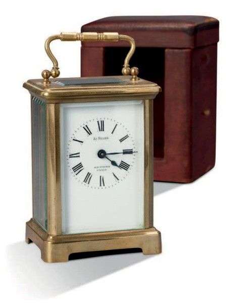 Pendulette cage en laiton à réveil d'officier