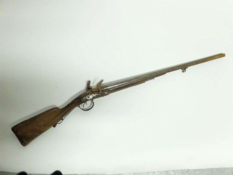 Fusil de chasse double à silex. Canons en table. Crosse en noyer. Dans l'é