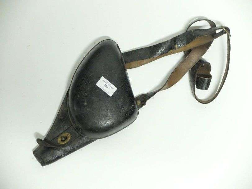 Étui-jambon, modèle 1892, en cuir verni, avec baudrier. BE