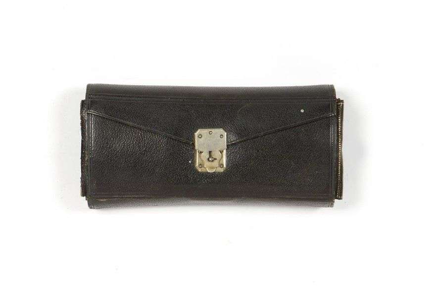 Petite trousse de chirurgie, à trois volets, en maroquin noir, bordée d'un