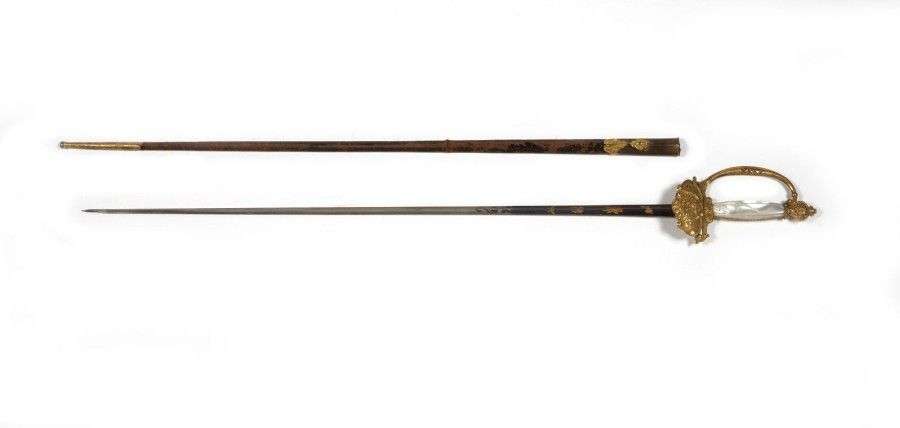 Épée d'Officier. Fusée à plaquettes de nacre. Monture en laiton, ciselé, d