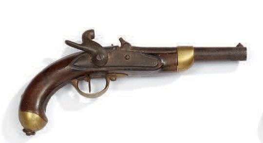Pistolet d'arçon, modèle 1822 T bis. Platine signée « Mre Impale de Tulle ». Dans l'état