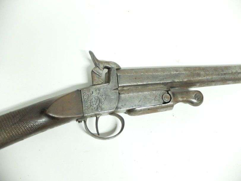 Fusil de chasse, à broche. Canon rond, à pans au tonnerre. Clef d'ouvertur