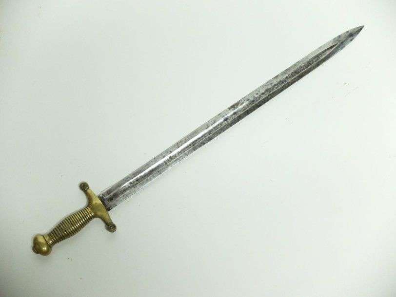 Glaive allégé, modèle 1855. Monture en laiton. Lame à deux tranchants, à gouttière centrale. ABE SF