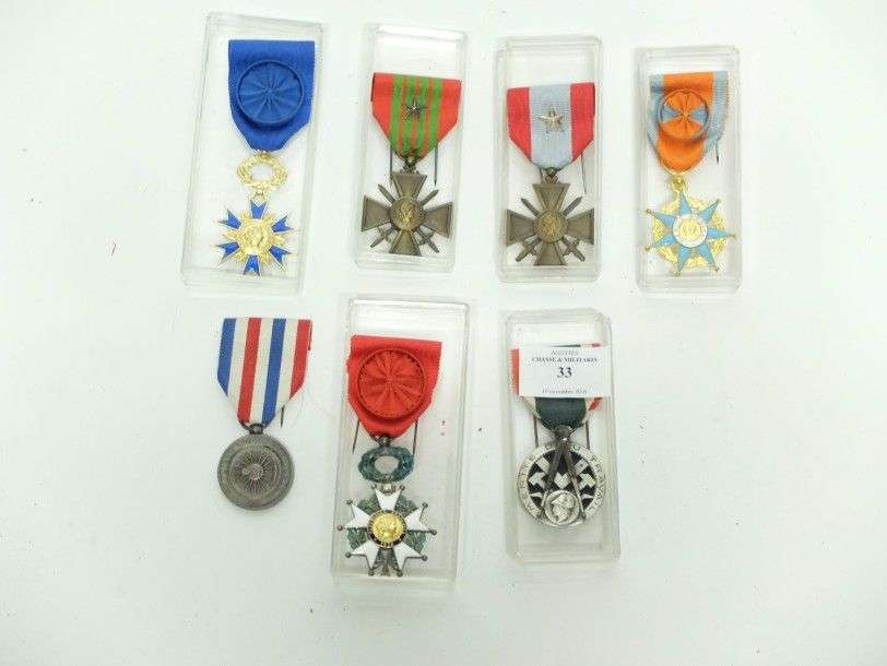 France Lot de 7 décorations, dont Chevalier de la Légion d'honneur, Mérite