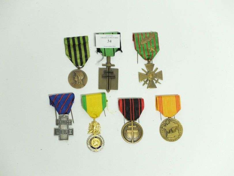 France Lot de 7 décorations, Médaille militaire, Ordre de la Libération, C