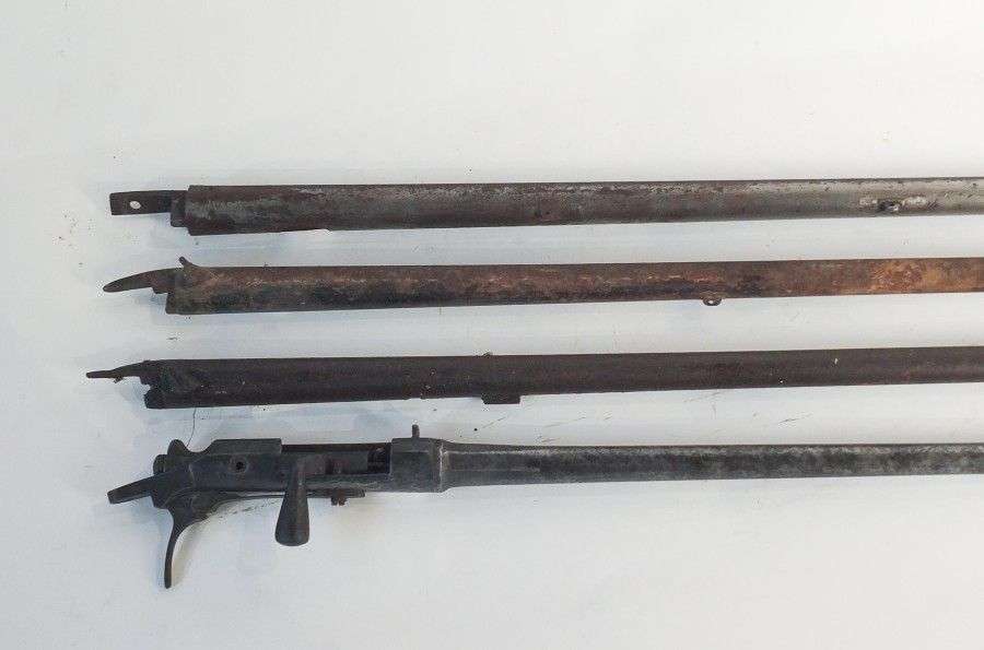 Lot de 4 canons : 1 à silex, 2 à percussion, 1 à verrou. Dans l'état