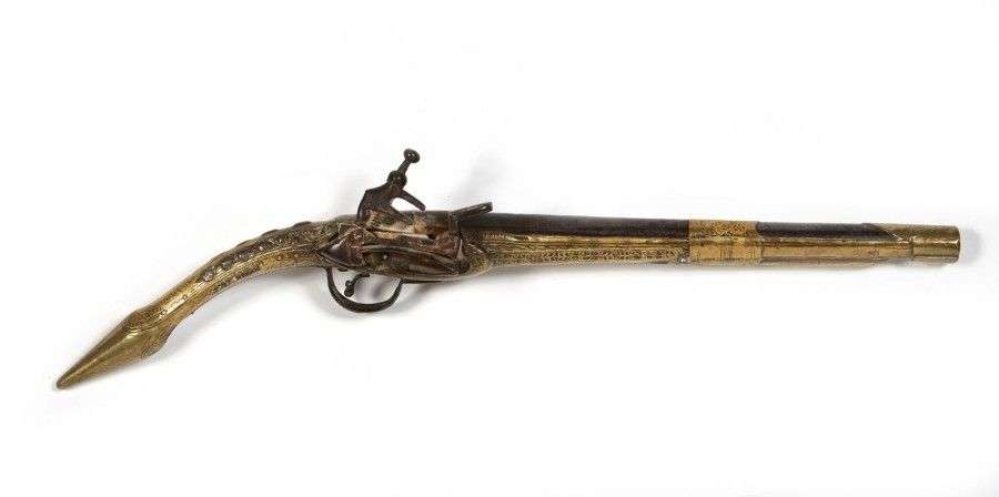 Pistolet balkanique, à silex. Canon rond, à méplats au tonnerre. Platine à