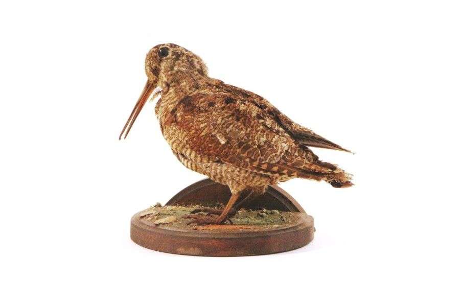 Bécasse des bois (Scolopax rusticola) (CH) : spécimen présenté sur socle à poser ou à accrocher, belle pièce ancienne