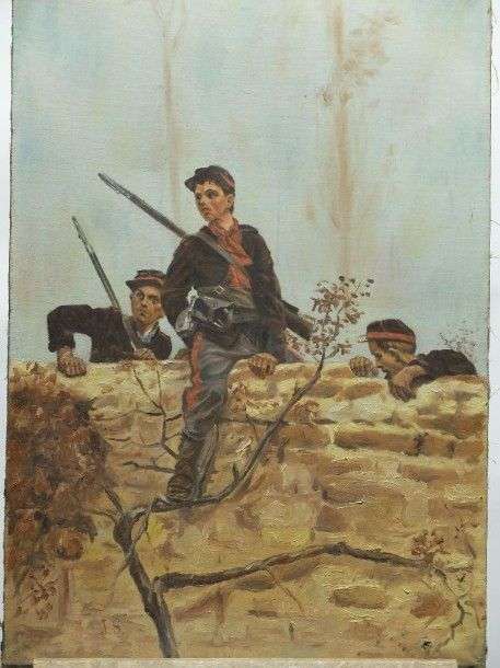 « Le passage du mur » Guerre de 1870. Huile sur toile, monogrammée JS en b