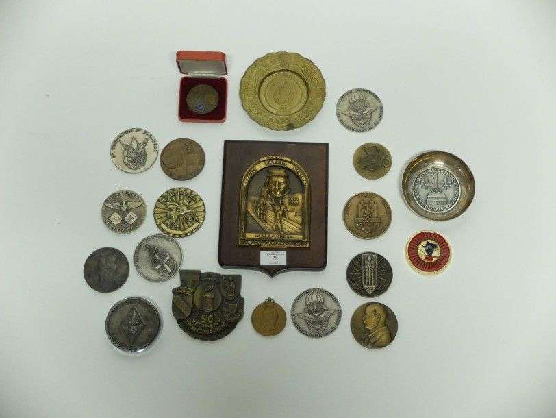 Lot de 20 pièces : cendriers, médailles de table, et tappes de bouche.