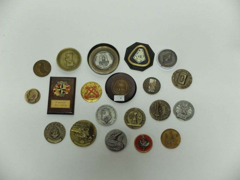 Lot de 20 pièces : cendriers, médailles de table, et tappes de bouche.