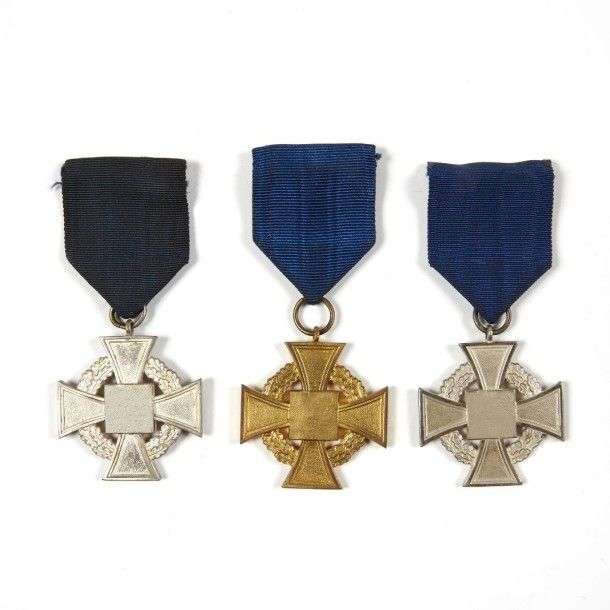 Allemagne Lot de trois médailles de service : doré, argenté (x2) rubans