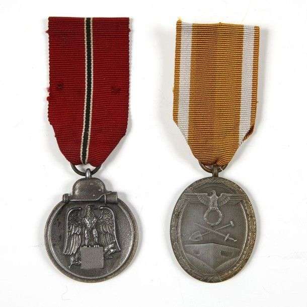 Allemagne Lot de deux décorations : (Todt ruban marron raies blanches), et médaille du 1er Hiver 1941-42. Rubans
