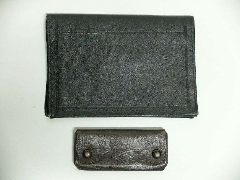 Lot de 2 portes-feuilles, en maroquin vert et maroquin noir, à poches. (us