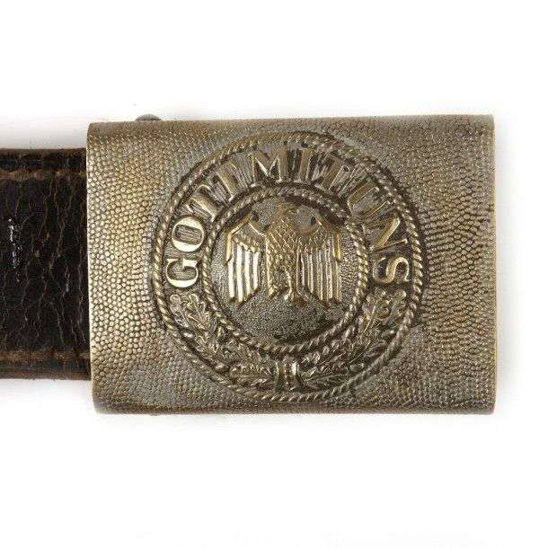 Plateau de ceinturon de l'Armée de Terre en métal nickelé avec contre sanglon en cuir. (usures)