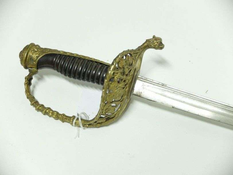 Sabre d'Officier de la Marine. Poignée en corne. Monture en laiton ciselé.