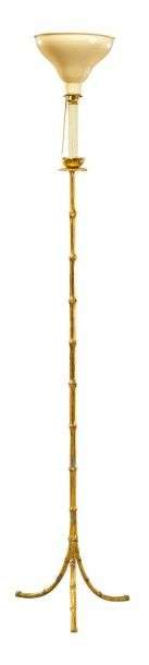 Suite de deux lustres en métal doré à motifs feuillagés à cinq lumières, on y joint une applique au modèle.