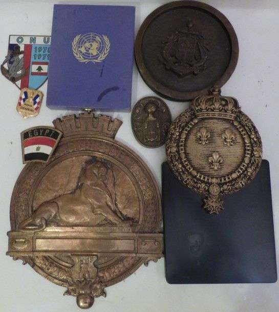 Lot d'environ 10 pièces, dont plaque aux défenseurs de Belfort, plaque aux Armes de France et divers.