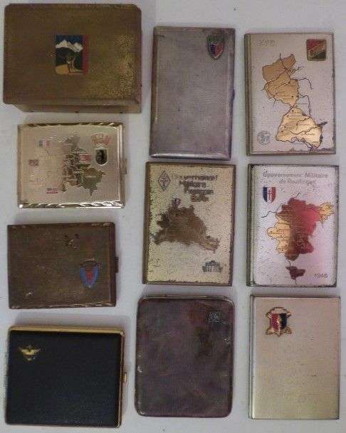 Lot de 10 étuis a cigarettes, période occupation de l'Allemagne et divers.