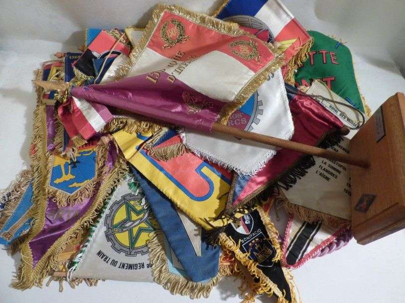 Lot de 50 (env.) fanions-souvenirs, principalement militaires.