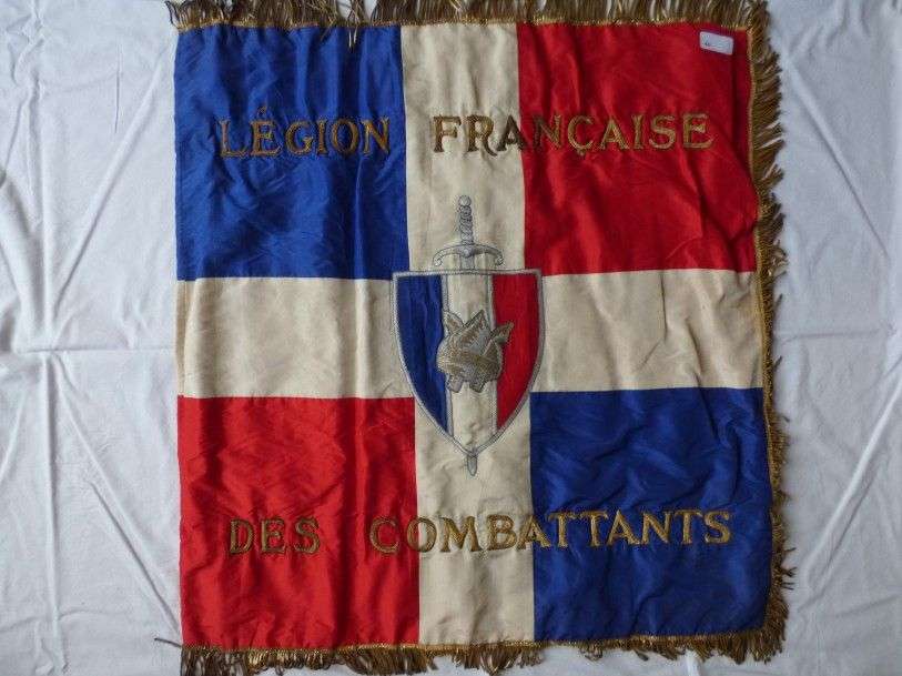 «Légion Française des Combattants» Drapeau, bordé de franges dorées, brodé