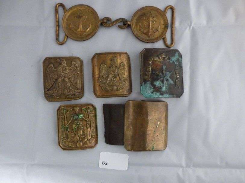 Lot de 6 plateaux de ceinturons: Garde nationale Louis-Philippe et Second Empire, Officier modèle 1845, Infanterie de Marine modèle 1931, Infanterie matriculé, Administration pénitentiaire.