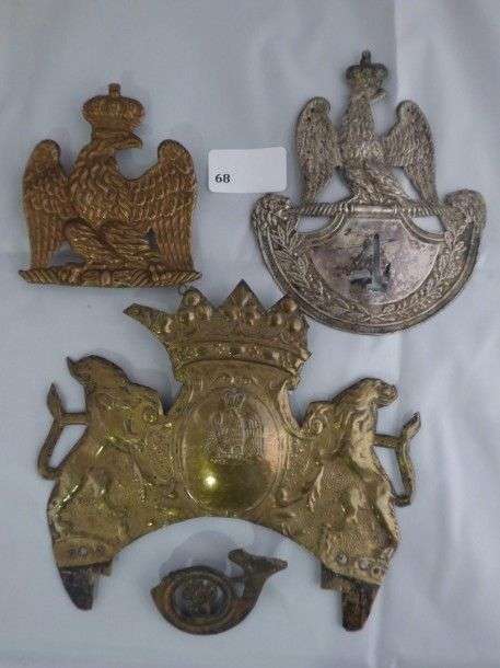 Lot de 4 plaques de shako et divers: au modèle 1812 argentée, aigle au mod