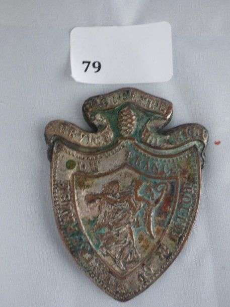 Plaque de fonction, en écu, en cuivre, argenté: Service accéléré du midi, Entreprise de France, Poulin & Cie. Au verso, poinçonnée Palais royal n°118.