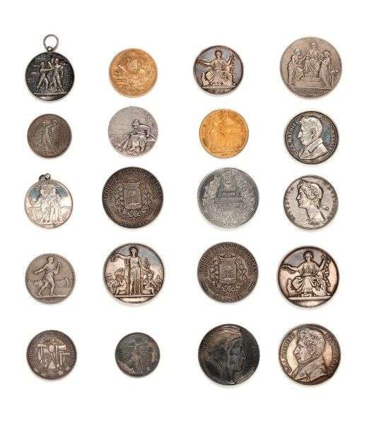 Lot de médailles de table, en argent, de Prix et Comémoratives, XIXè et XX