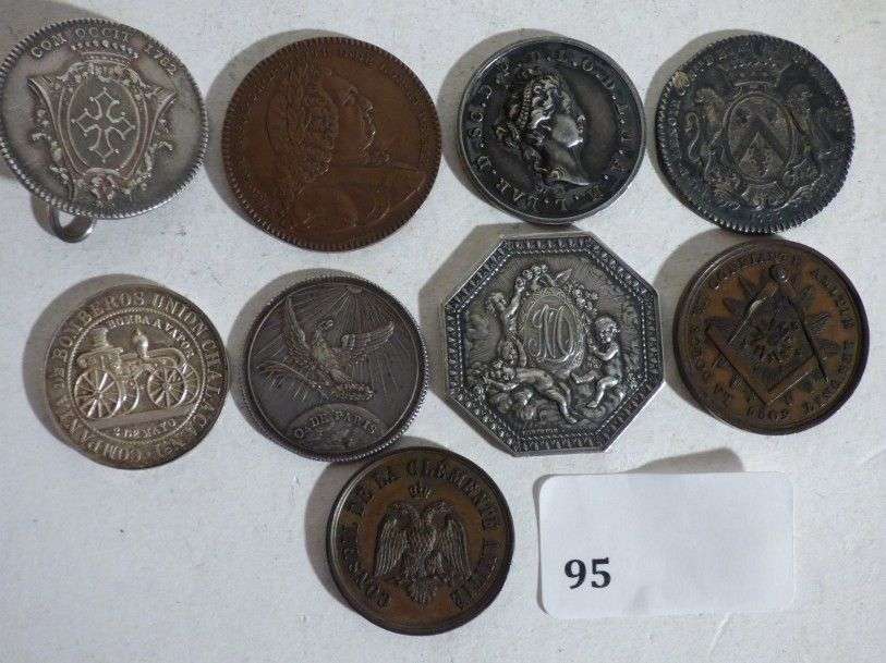 Lot de jetons franc maçonnerie, blasons, XVIIIè et retirage XIXè siècle.