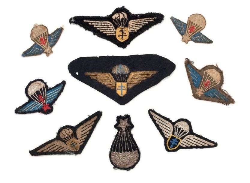Lot de brevets en tissus de Parachutistes FFL, usures.