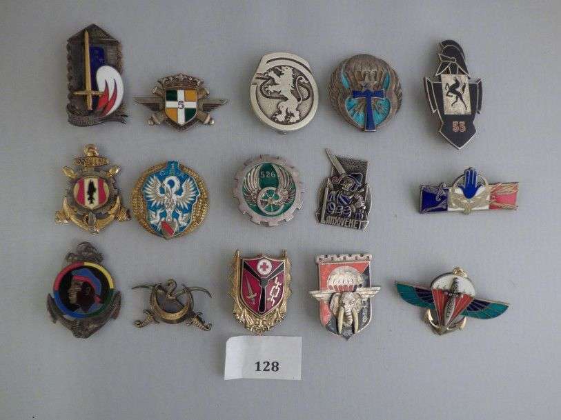 Lot d'insignes, argent et divers.