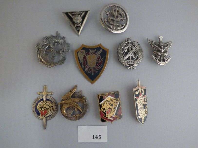 Lot d'insignes commandos de l'Indochine, dont certains fabrication locale.