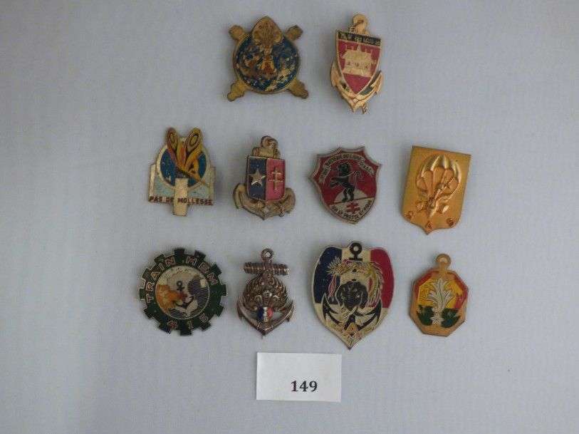 Lot d'insignes de l'Indochine, dont certains fabrication locale.