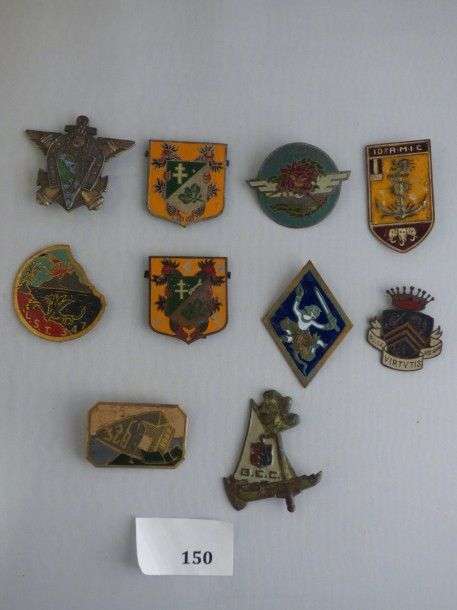Lot d'insignes de l'Indochine, dont certains fabrication locale.