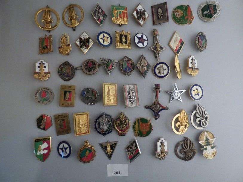 Lot d'insignes de la Légion étrangère, dont retirages et accidents.