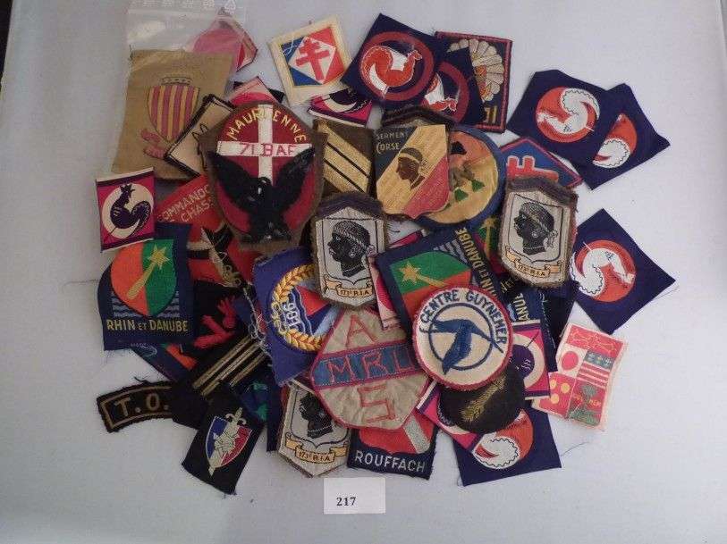 Lot d'insignes en tissus, 2è Guerre mondiale et divers.
