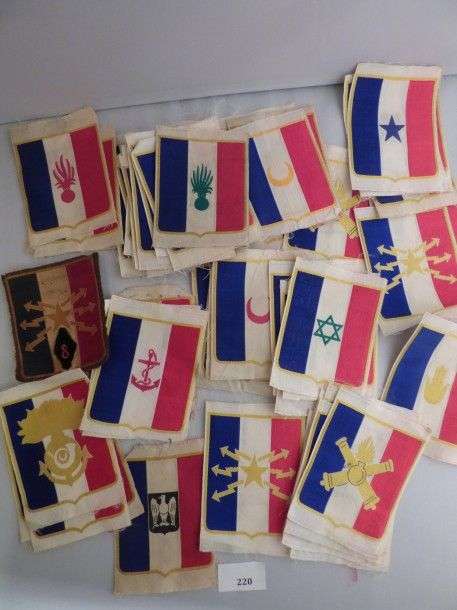 Lot d'insignes tissu de l'Armée d'armistice, divers armes, dont Légion étrangère… (60 insignes env.)